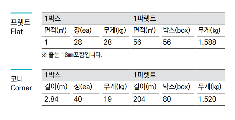 1박스 = 1㎡ (28장)