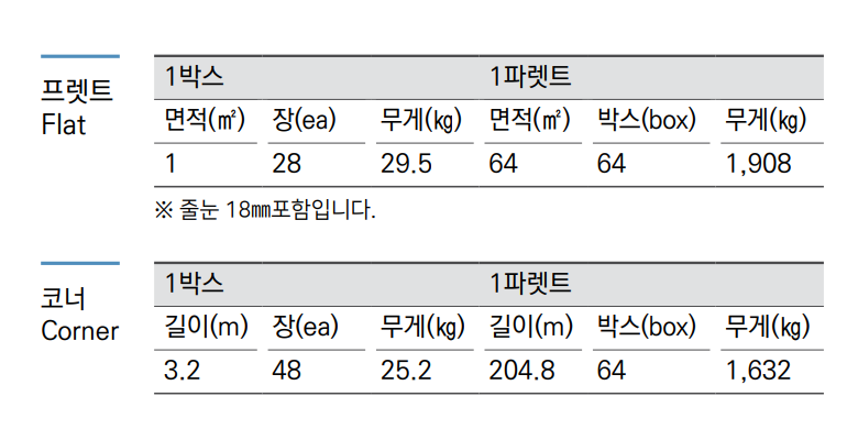 1㎡당 1박스, 1박스=28장