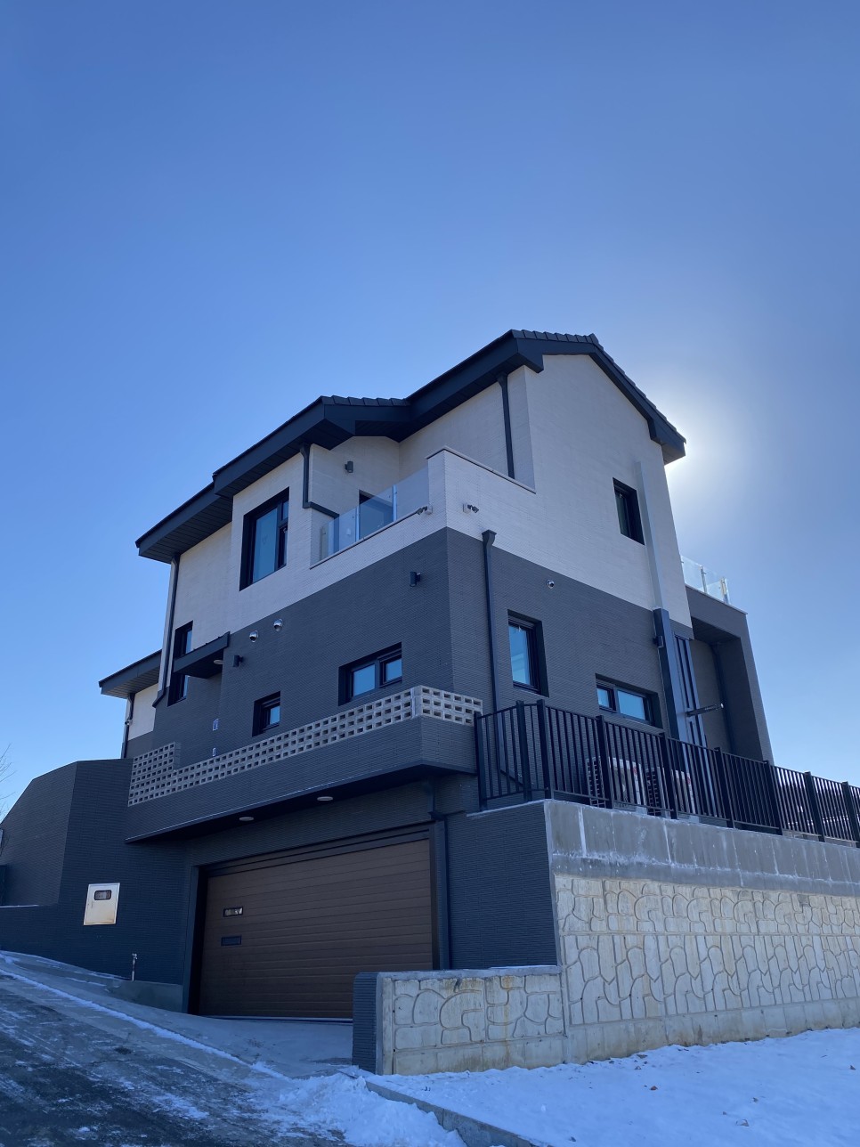 비비블랙컬러와 화이트컬러를 반씩 시공한 모습입니다.