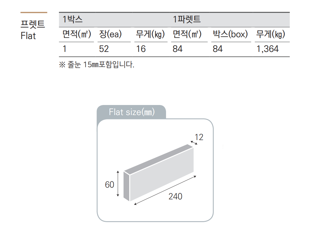 1㎡당 1박스, 1박스=52장