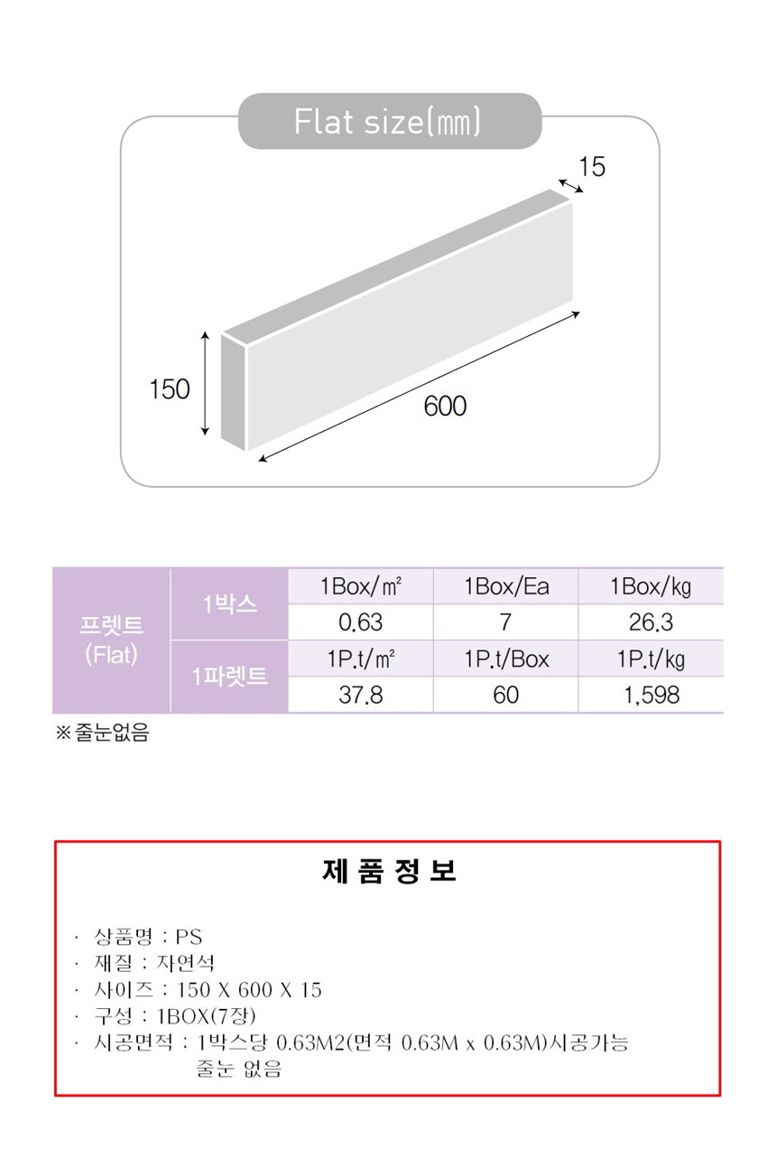 1박스= 0.63㎡ (7장)